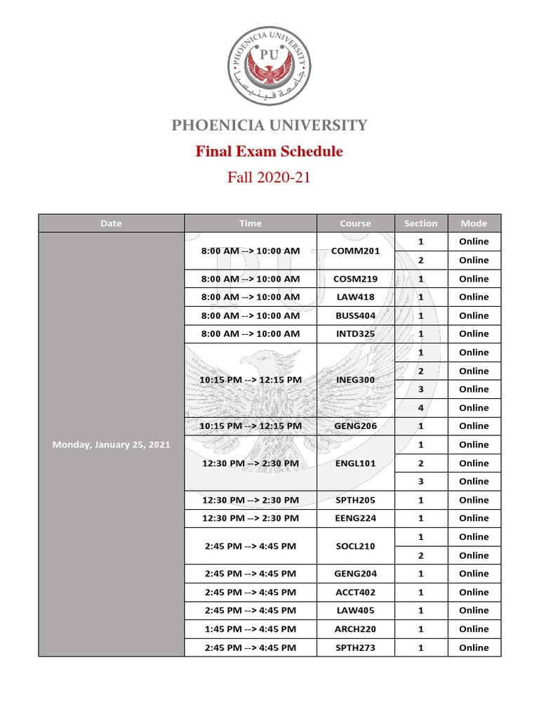 Jcu Final Exam Schedule Fall 2025 Images References :